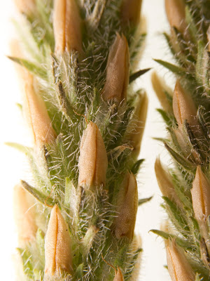 As you can see from the scans these plants can be pegged as Plantago from the moment you lay eyes on them. However, at crouching-down-beside-them distance they start to look like two different things. And then when magnified a little Plantago wrightiana has four translucent petals and silky hair on the sepals of each flower, and P. rhodosperma has dried-up looking yellow petals which stick straight up and course hair on the sepals. In fact, at close range the Wright’s plantain might even be generally regarded as something to see.