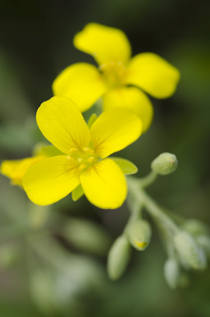 A beautiful specimen, no doubt.  And even a beautiful Latin name.  But we understand why sometimes the Romance language is better remembered for a piece of botany: this flower's common name is Gaslight Bladderpod.  The native of Texas is in the mustard family (our garden is currently shining fence-to-fence in tall, yellow blooms of the domesticated mustard plant).  The opening image to this blog post is also one among the mustard family.