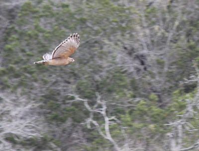 Something appears to have killed several of the hens, so now we keep them continually locked up in their house. This makes them depressed, and they are rebelling by refusing us eggs. One of the red hens was found just off our deck with its abdomen ripped open, revealing shiny gray entrails. Then about a week ago when I was up top, I turned around to see a gorgeous red fox standing sideways to me and staring motionless into my face. We stood there thirty feet in front of one another for a minute until he slowly turned his head and continued on down his trail of barely detectable bent grasses. I don't know that it was a fox that killed the hens. We've also been seeing one or two red-shouldered hawks sitting in the limbs across the creek. Who knows?