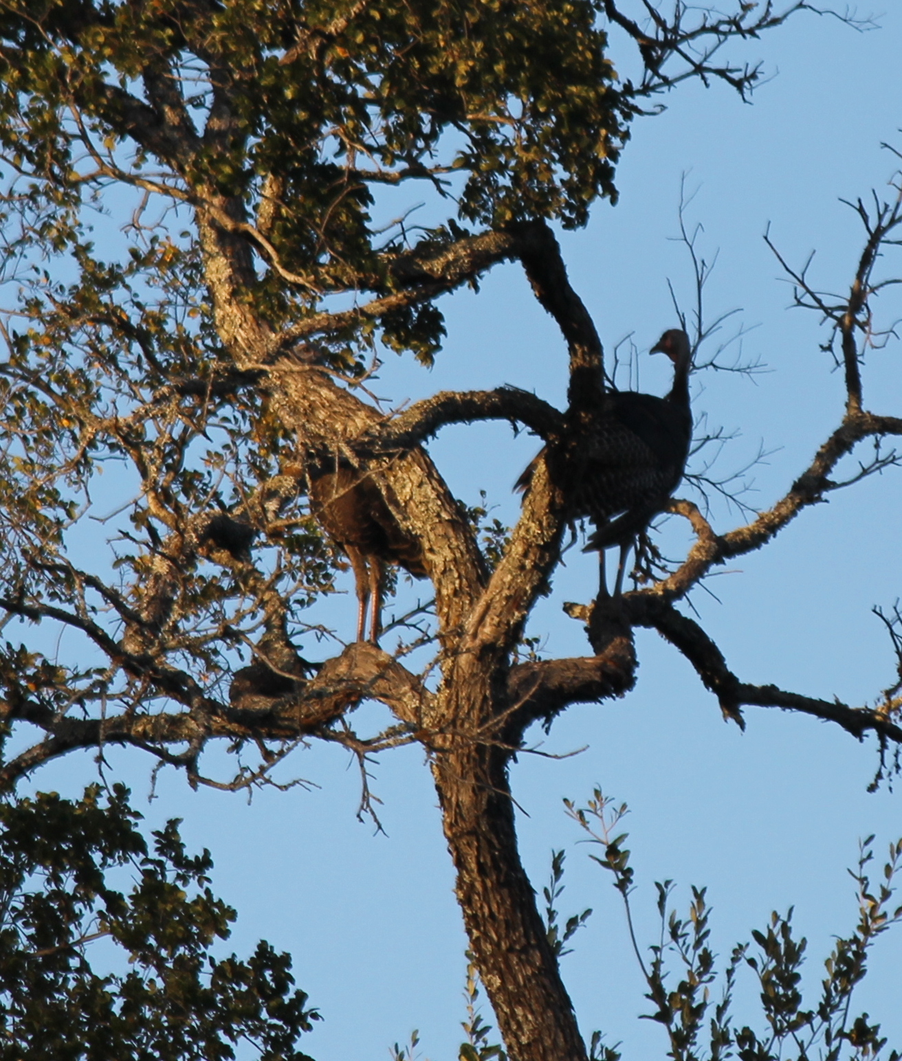 | Eventually the turkeys flew across the waters to thicker woods and then up high in the cedar elms. |
