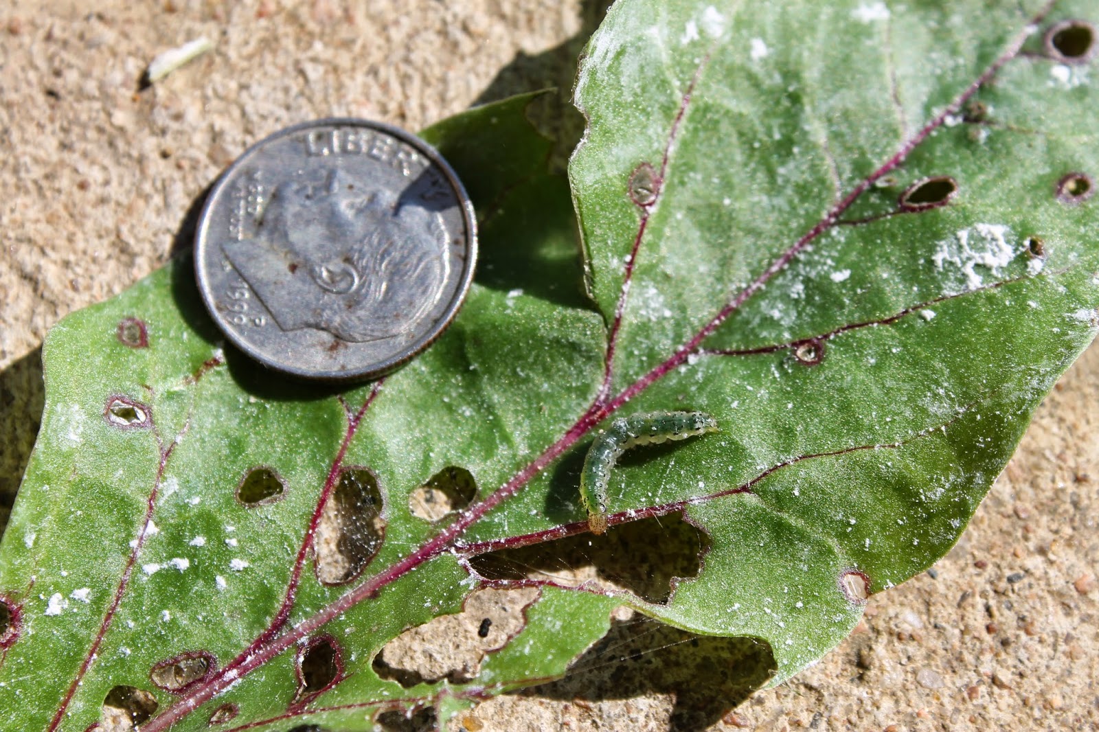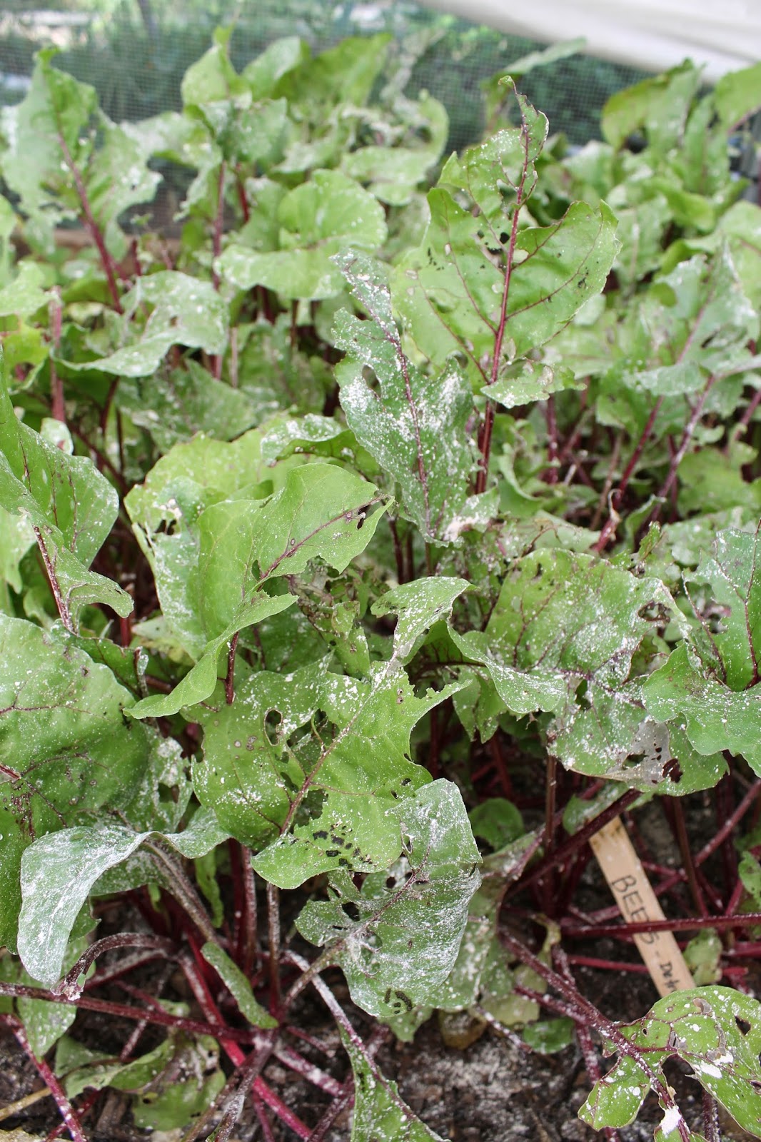 First we noticed the small green worm's destruction of the spinach almost within two days' time while we were away. Then they took to the beet leaves. I've tried dusting with diatomaceous earth and picking them off individually, but they are amazingly elusive.