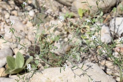 Not a lot of attention. Not a lot of show. Just taking up space among the stones. And one of the white flowers enlarged to the right.