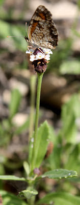 And to the right, the dimmunitive Texas frog fruit (Phyla incisa) blossoms have attracted scores of moths and butterflies this time of year.