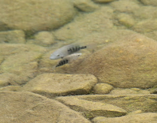 For our mystery fish who now have proven themselves quite fertile parents, see a short video clip of their nervous attempts to guard a shifting brown cloud of several thousand eighth-inch long young ones.