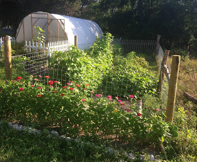 Trumpet creeper blossom on the vines in the hens' yard.