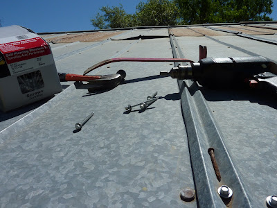 Project: replace all the loose screws on the Hog Shop roof.