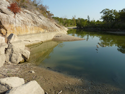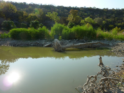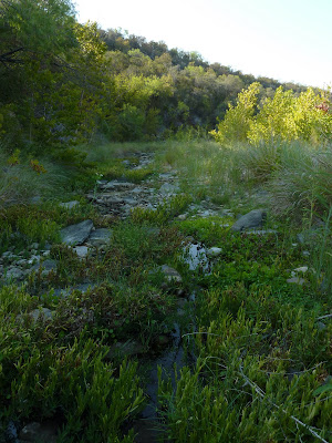 I really didn't think that the Creek would still be wet this deep into the hot drought, but water continues to seep up into the upper stretch of the stream, and if not exactly working a brisk flow, it at least is able to keep up enough of a presence to sustain the usual Creek life.