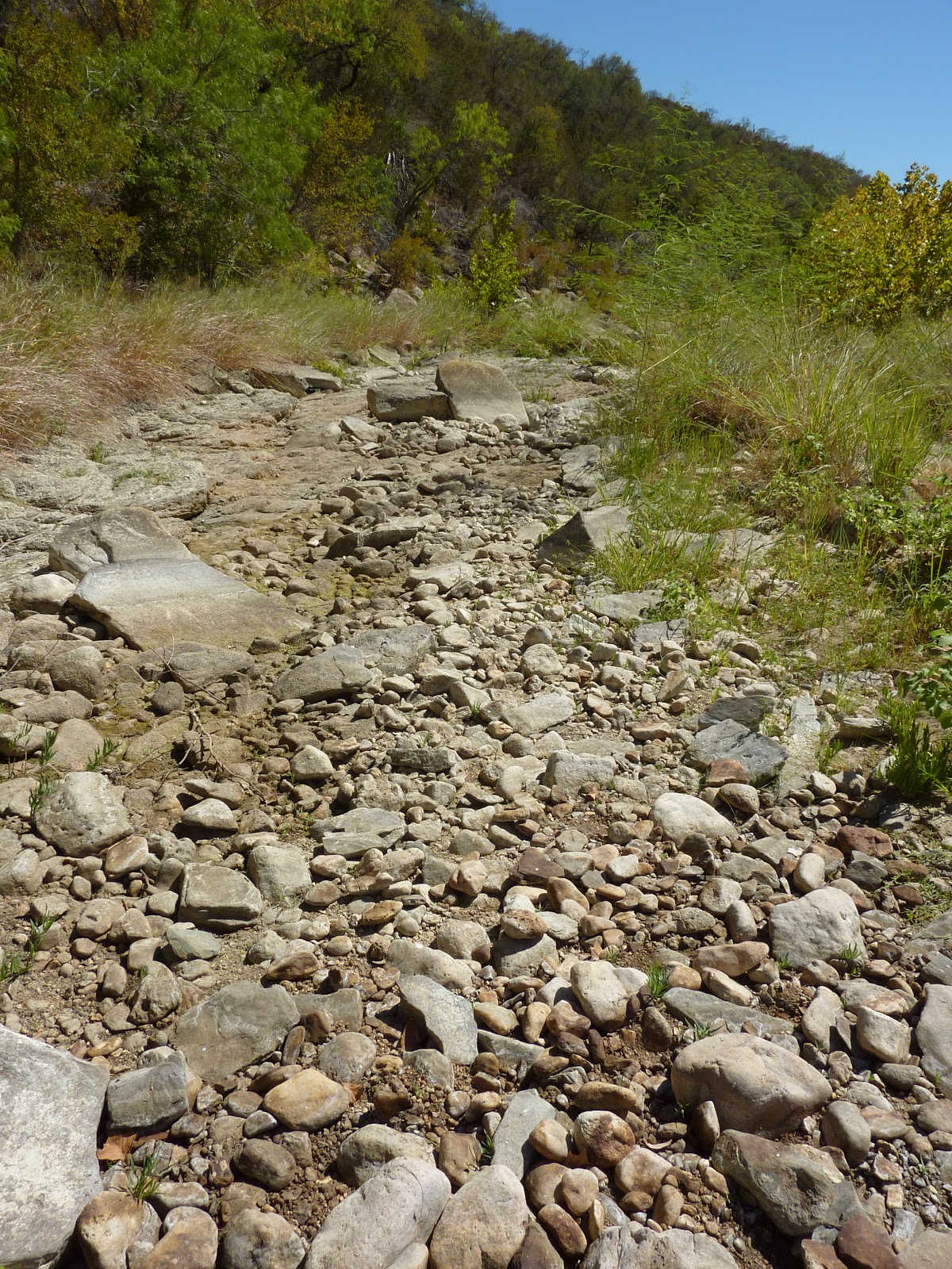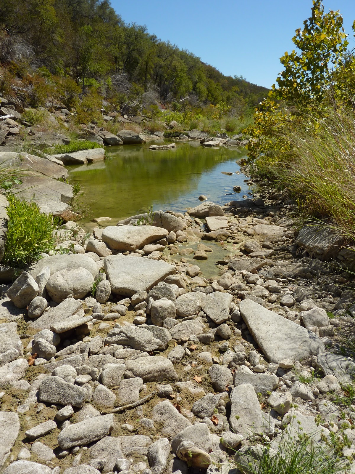 At what hour the Creek ceased to flow is not known. Maybe creeks are special about not having a moment of death capable of being witnessed by us. A couple small pools and the main pool still have water and fish, but the flow has gone out of the stream, and with the loss of flow, so also the loss of a sound and a shine.