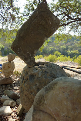 When things out at the Creek get just too hot for us to work at anything productive (we hit 112 degrees yesterday), we take to the purely useless. Like stone-balancing.