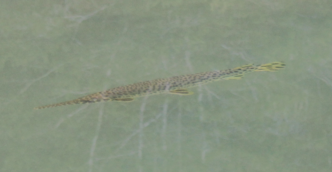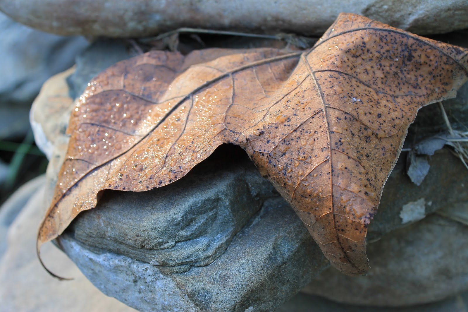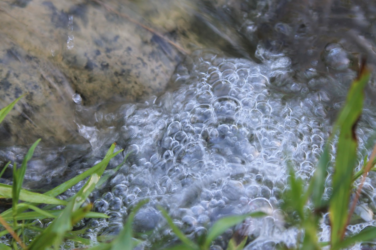 The mid-August sweetheart on the stones above appeared gray as the dried stream bed until it wet its scales in what's left of the Creek (below).